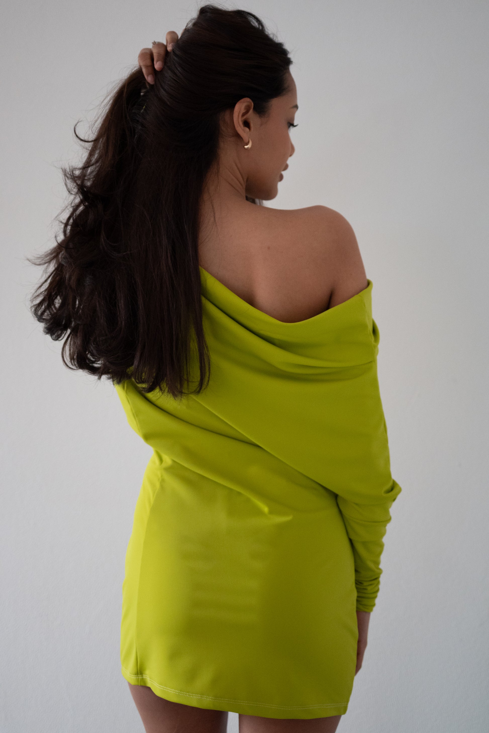 This off-shoulder long sleeve dress features a relaxed, flowy fit above the waist, paired with a fitted lower section that hugs your curves just right. Effortless yet bold, it’s your perfect go-to for warm nights and sun-drenched days.