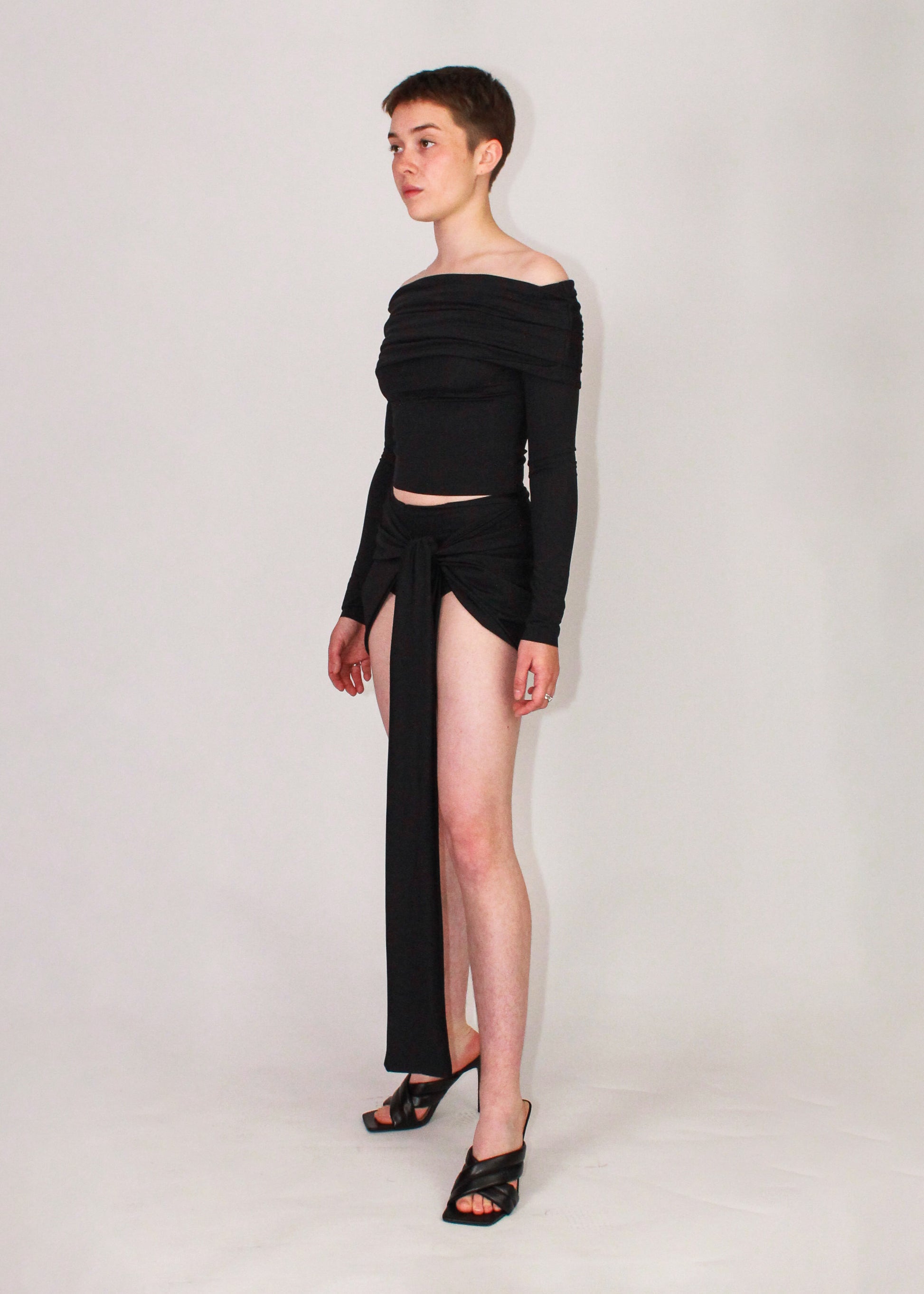 The Nightbloom Wrap Skirt Shorts fuse fluid draping with confident practicality. Featuring a built-in short for ease and comfort, this piece wraps around the waist into a striking skirt silhouette with an asymmetric long tie detail. Crafted in our signature stretchy soft Econyl fabric, it creates movement and drama while maintaining a secure fit for dancing through the night.